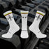 Medvilninės kojinės, ilgos, baltos spalvos.