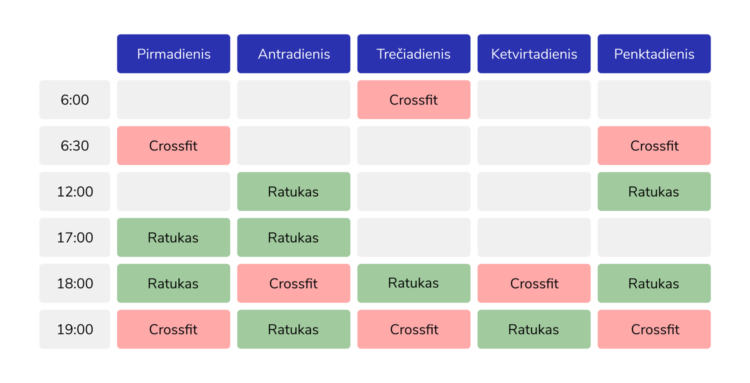 Visiems pradedantiems rekomenduojame pradėti nuo Ratuko. Tai funkcinė treniruotė, kurios metu dirbama stotelėse laiko intervalui.
